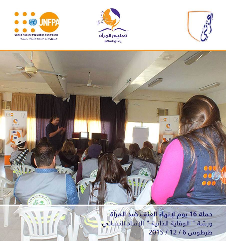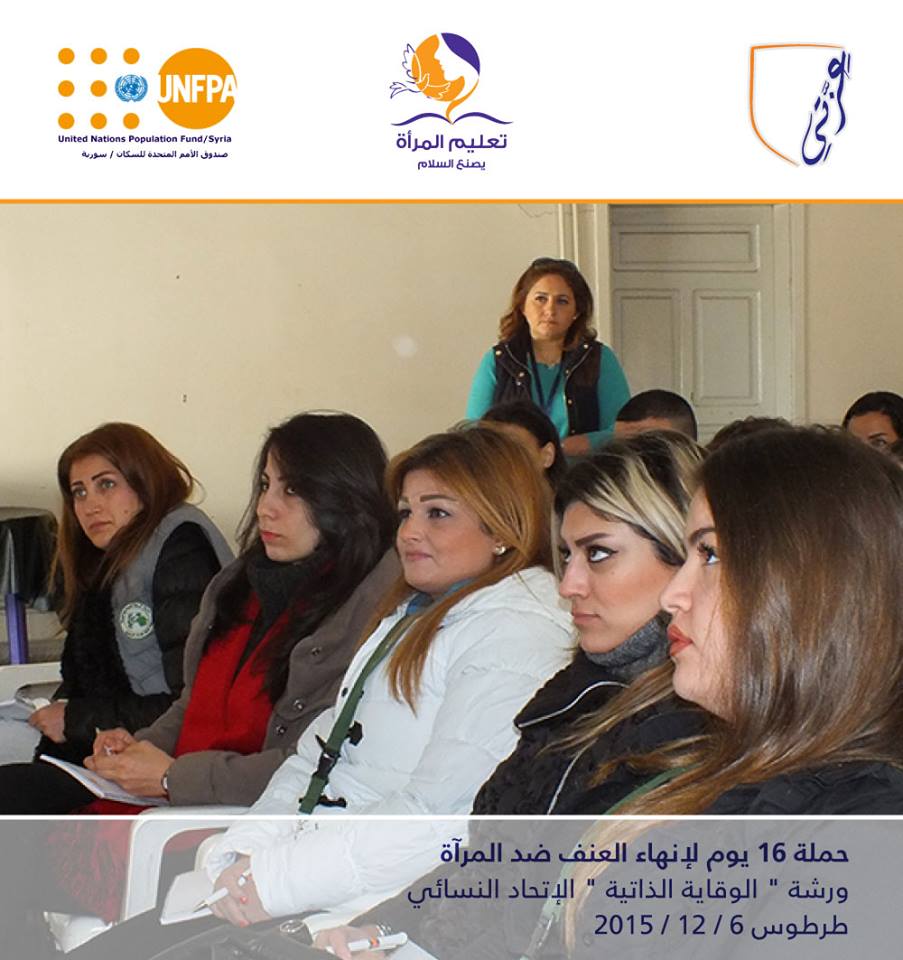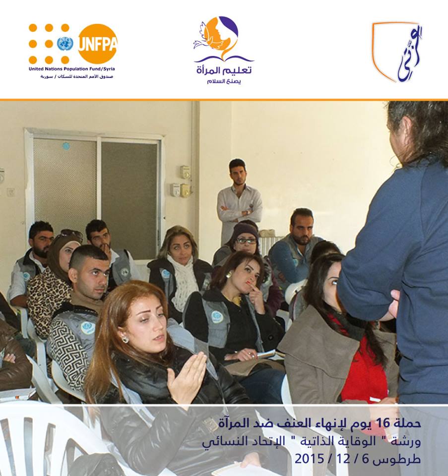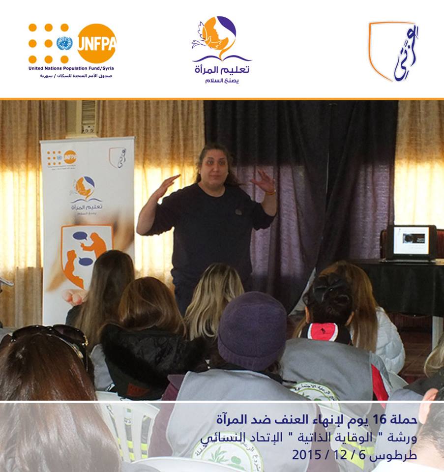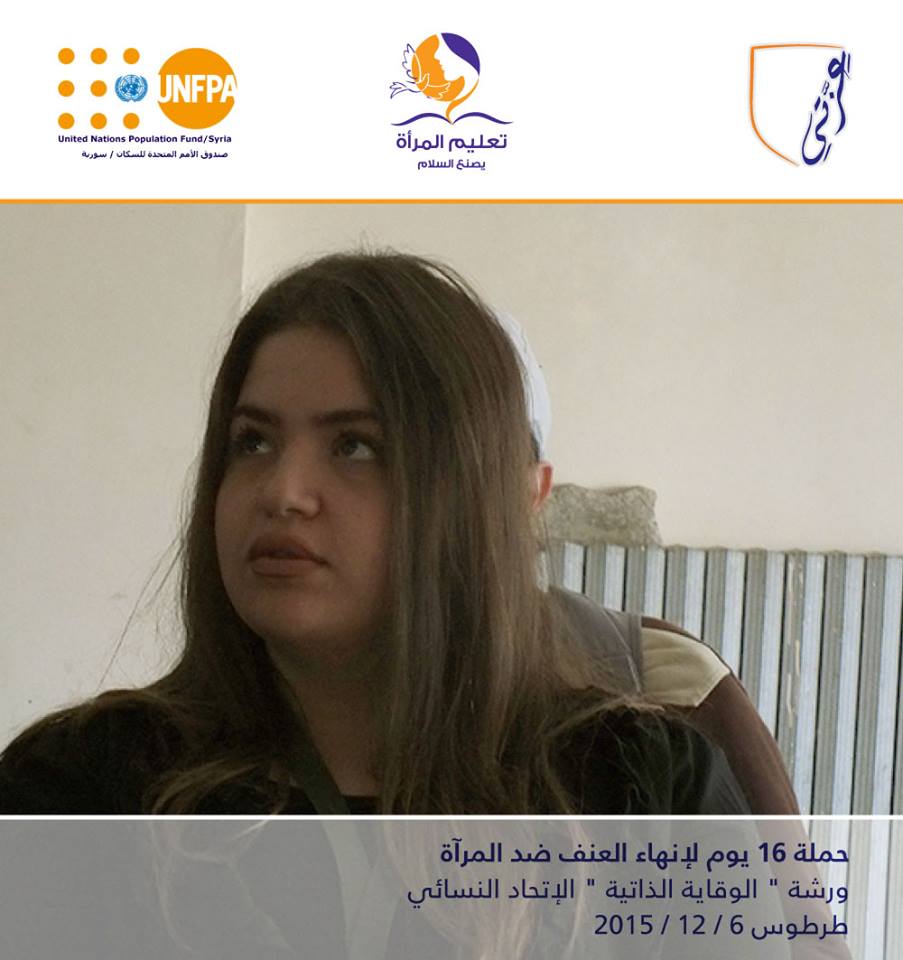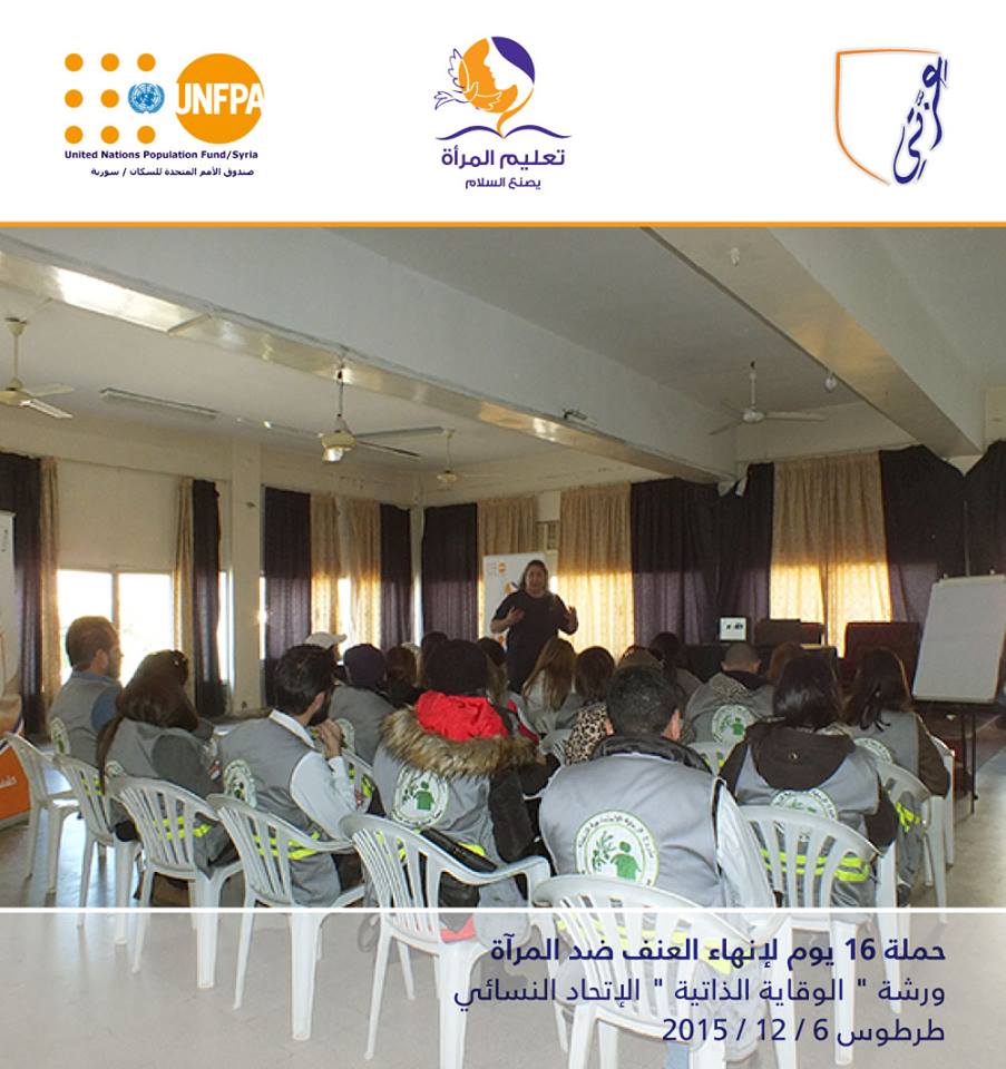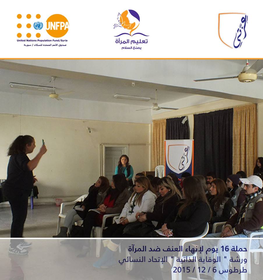 اختتمت مؤسسة عزتي ورشاتها في مدينة طرطوس ضمن حملة احتفالية 16 يوماً لإنهاء العنف ضد المرآة بأحد أهم ورشاتها عن اساليب الحماية وكيفية الحفاظ على سلامة الأفراد من خطر الإعتداء من الاشخاص ، وذلك من خلال ورشة عمل "الوقاية الذاتية" ، وسط اهتمام وتفاعل كبيرين من الحضور الذي لم يقتصر على الشابات فقط بل وامتد ليصل لاهتمام وفضول الشبان المتطوعيين، ليؤكد أن تعليم وتوعية المرأة هي مسؤولية جميع أفراد المجتمع