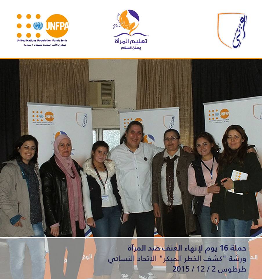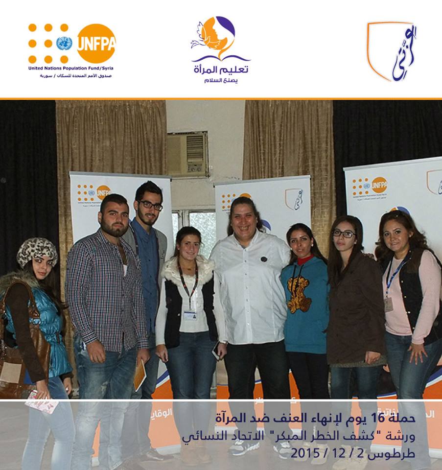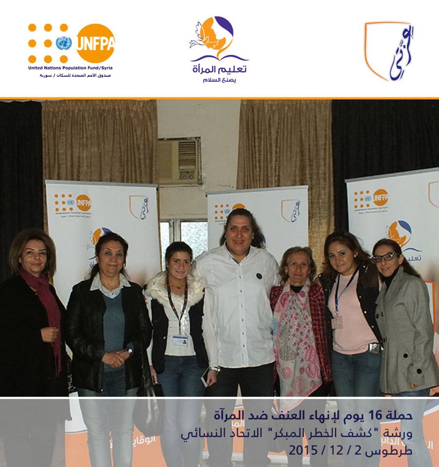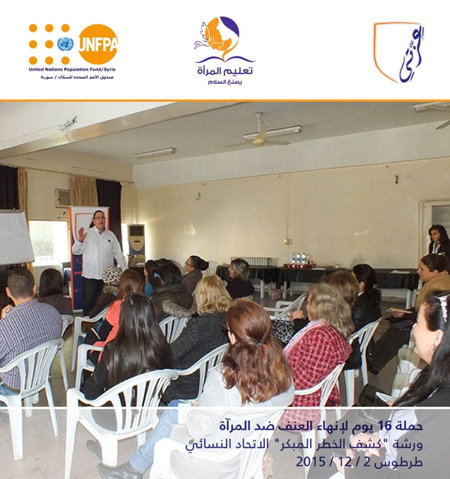 من هنا جاءت فكرة الحفاظ على سلامة الانسان والوقاية من الأشياء لتلافي خطرها على النفس والممتلكات تلك كانت مواضيع الورشة التوعوية "كشف الخطر المبكر" في طرطوس التي قدمتها مؤسسة عزتي ضمن حملة 16 يوما لإنهاء العنف ضد المرأة وتحت شعار تعليم المرأة يصنع السلام تنوع الحضور من مختلف الجهات والخلفيات الثقافية اغنى ورشة العمل بعدة نقاشات فعالة حول كيفية كشف الخطرالمحيط في أماكن العمل او المنزل او حتى في الشارع الحضور من جمعية الاسلامية الجعفرية - الإتحاد النسائي - جمعية تنظيم الأسرة السورية- جمعية المرأة الذكية العدد 23 المحاضرون عزة عطورة